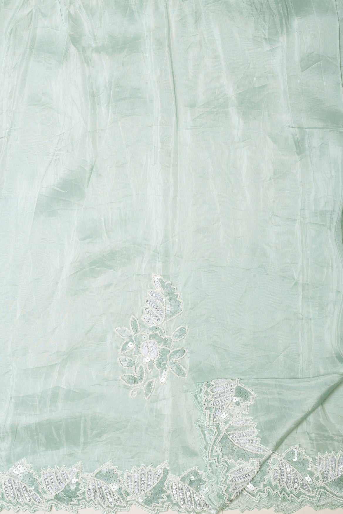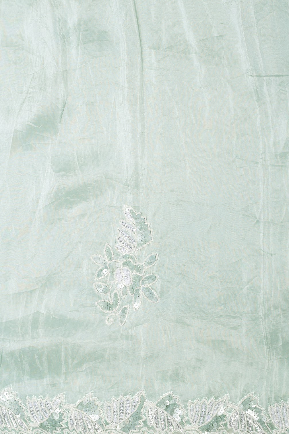 Rock the party wearing blue color floral motif saree embellished with sequins and beads having finished with scallops paired with matching blouse having elbow length sleeves