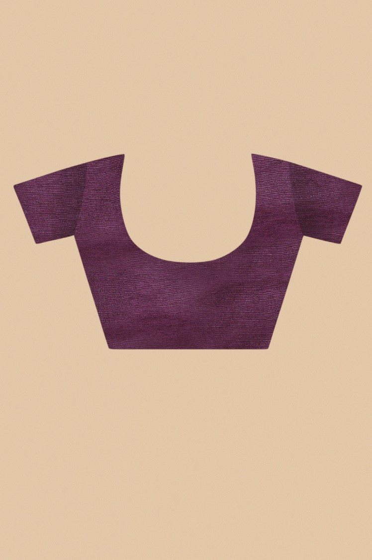 Be the fashionista wearing purple color floral motif woven saree having broad border and palla work paired with matching blouse having elbow length sleeves
