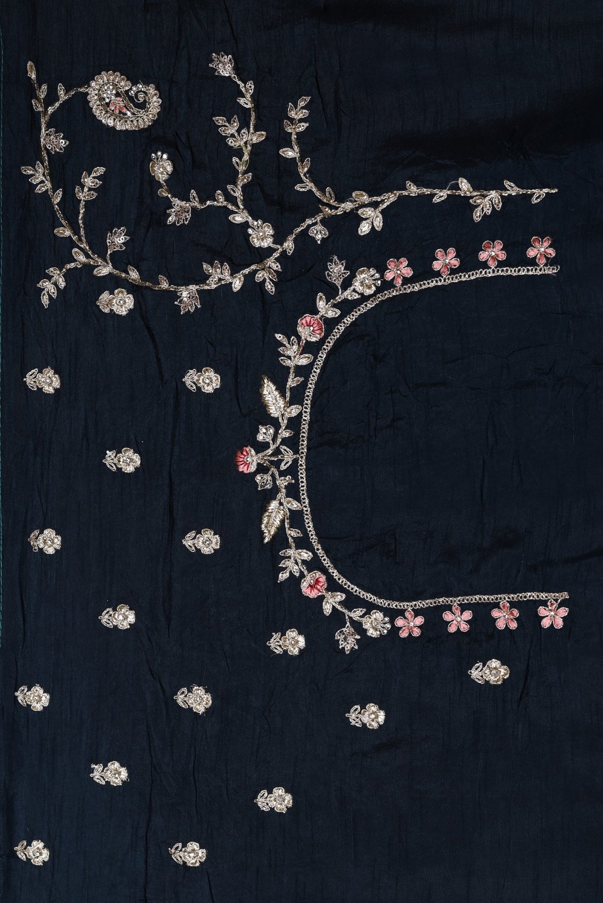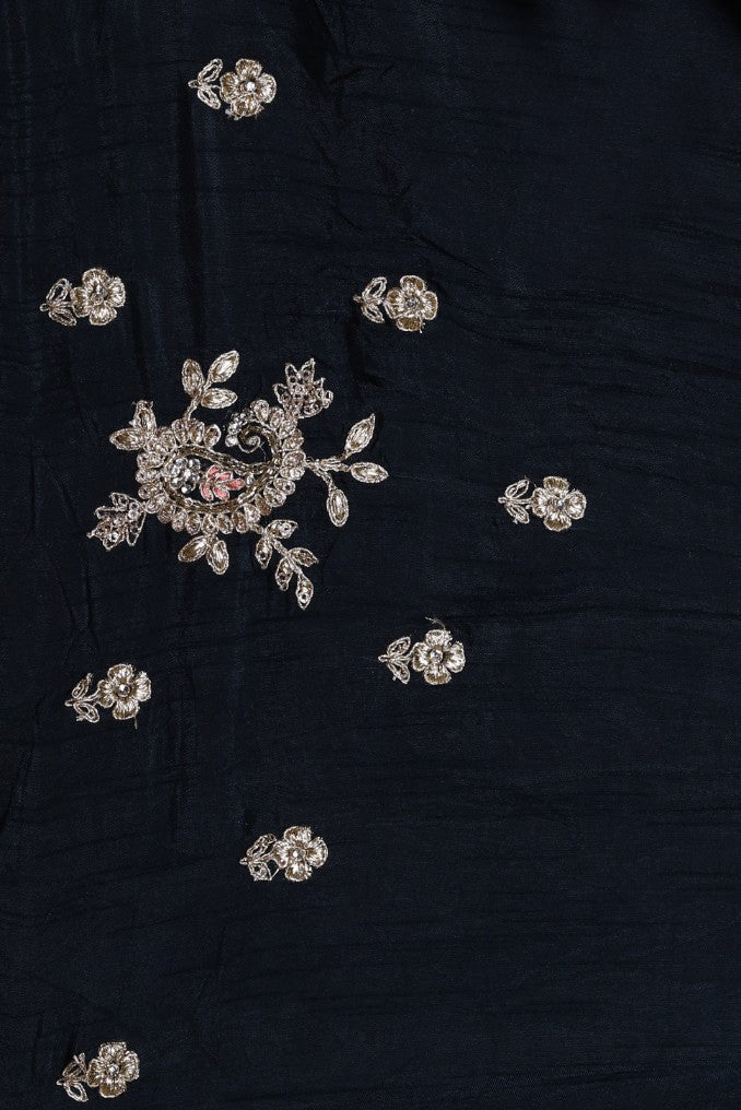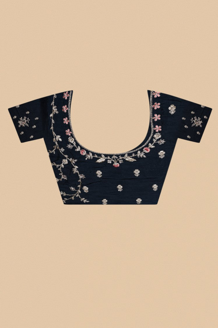 Rock the party wearing peacock green color silk blend paisley motif saree embellished with resham, zari, sequins and beads paired with matching blouse having elbow length sleeves