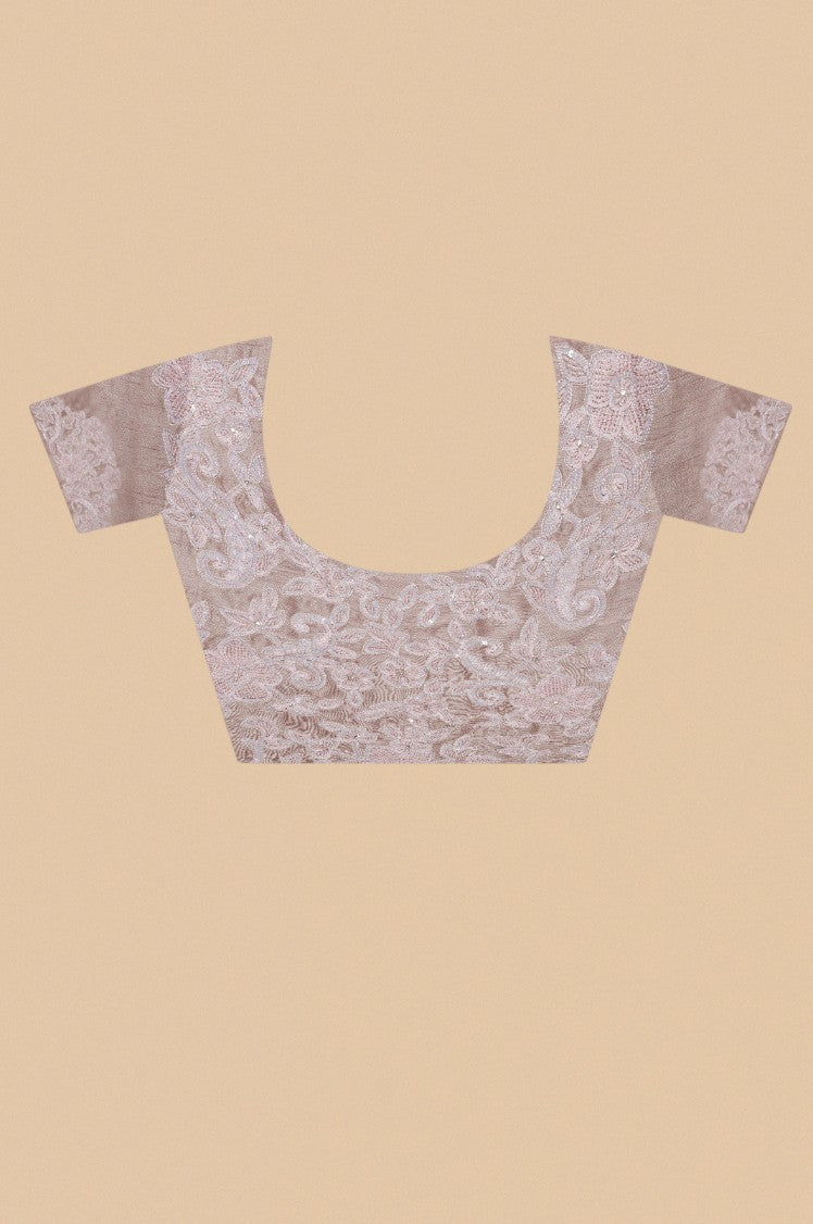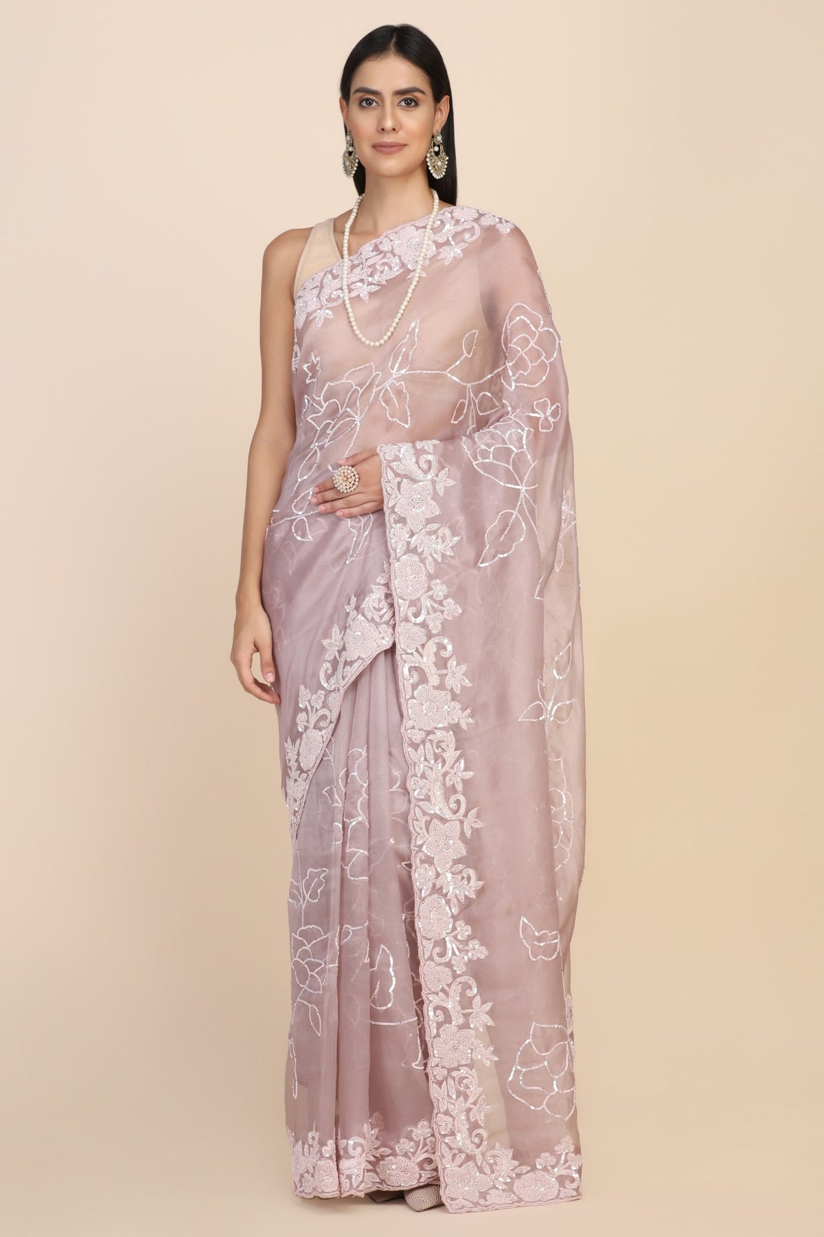 Beautiful rose pink color floral motif embroidered saree