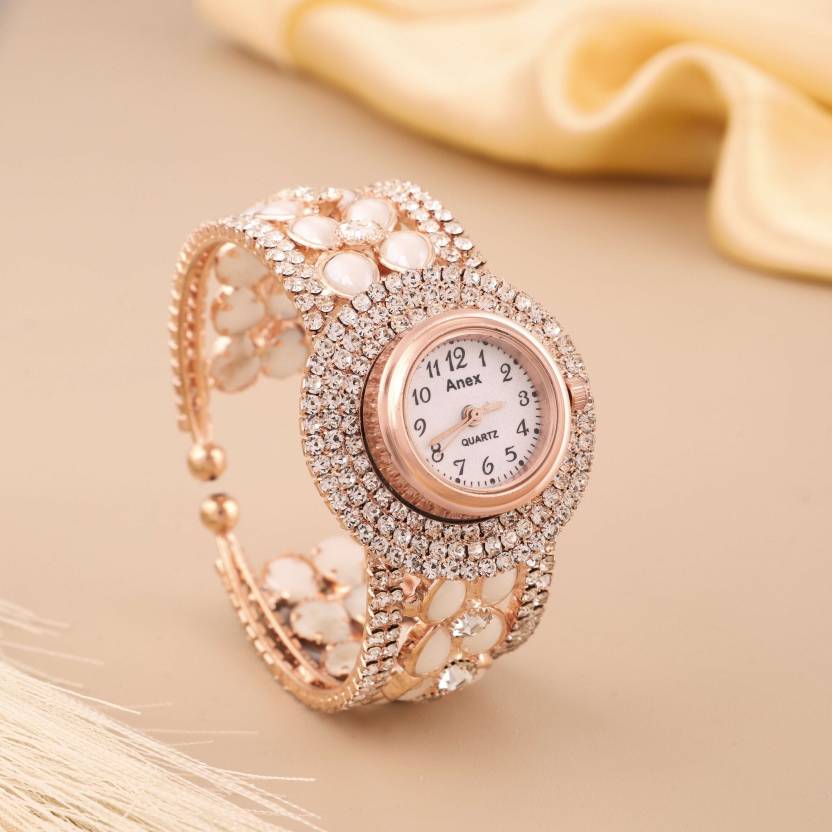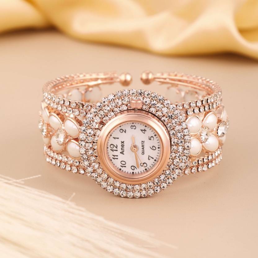 This stunning wristwatch ⏰ is the epitome of elegance and luxury ✨. The round rose gold frame is adorned with sparkling rhinestones 💎, creating a radiant and glamorous look. The strap is beautifully embellished with floral-inspired designs 🌸, accented with pearl-like details 🤍 for a soft and sophisticated touch. Powered by precise quartz movement, this timepiece is both functional and stylish. Perfect for formal occasions, parties, or as a statement accessory, this watch is sure to add a touch of glamour to any outfit 💖.