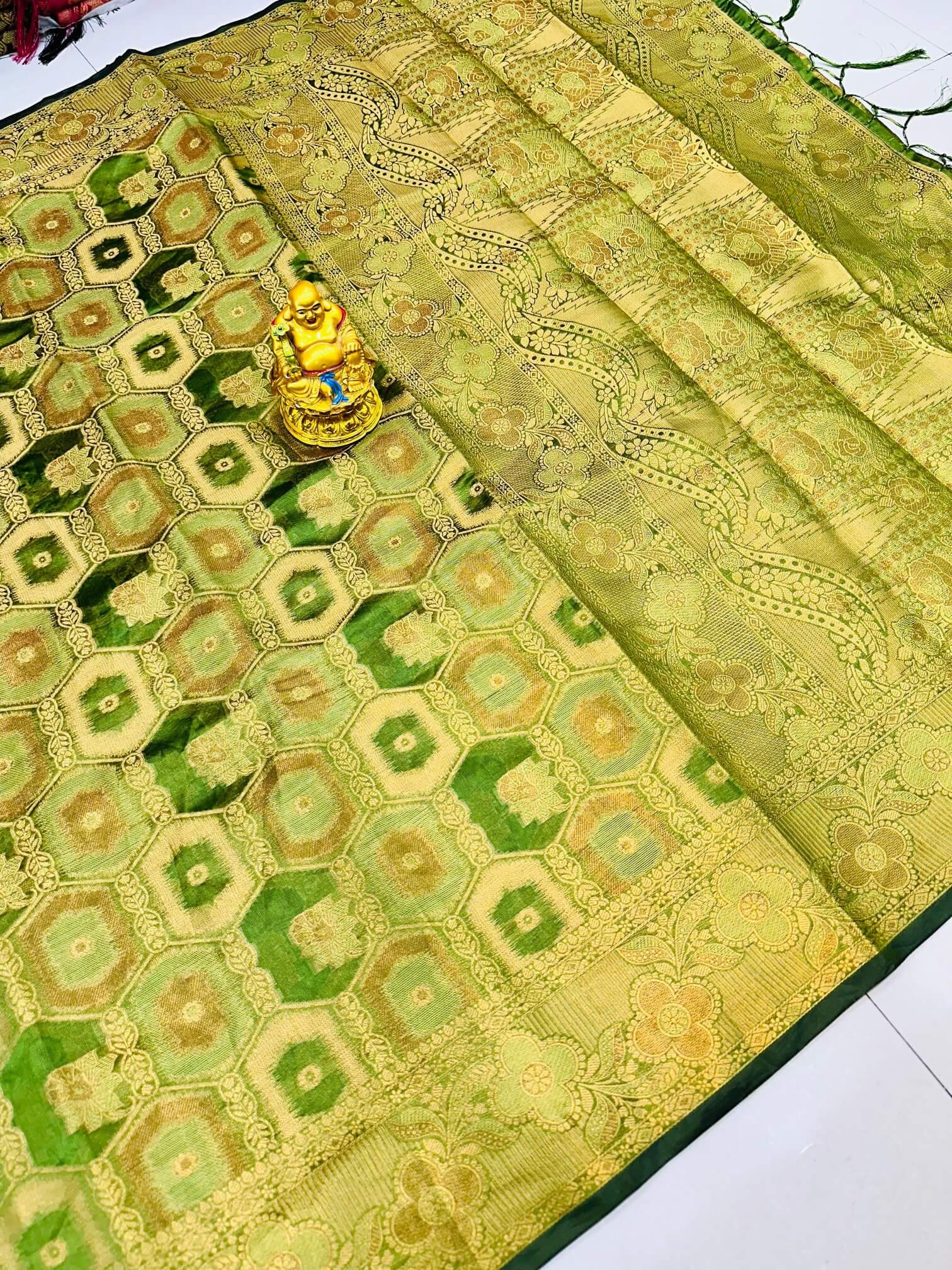 Extraordinary Green Organza Silk Saree With Marvellous Blouse Piece
