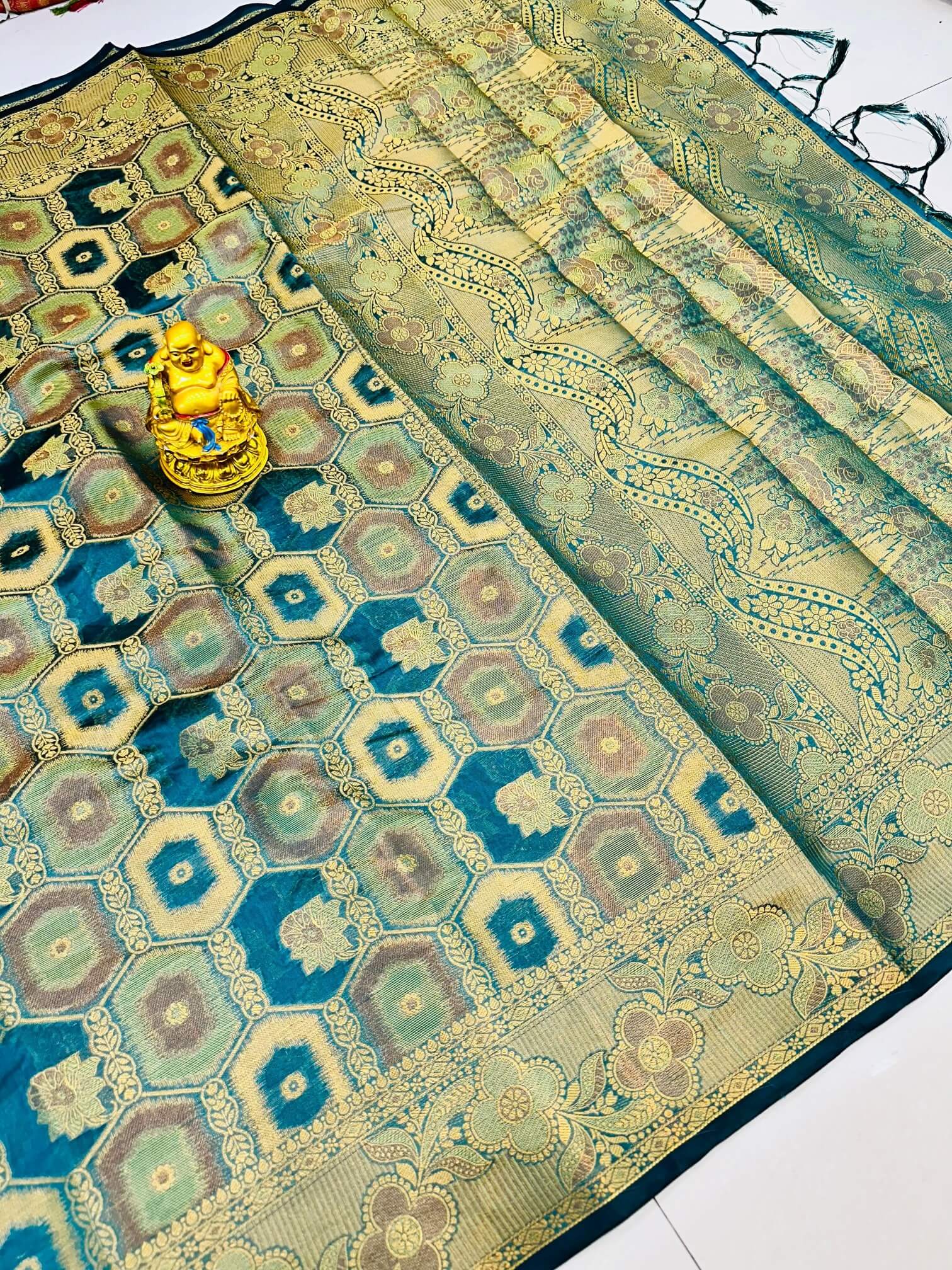 Fairytale Rama Organza Silk Saree With Adoring Blouse Piece