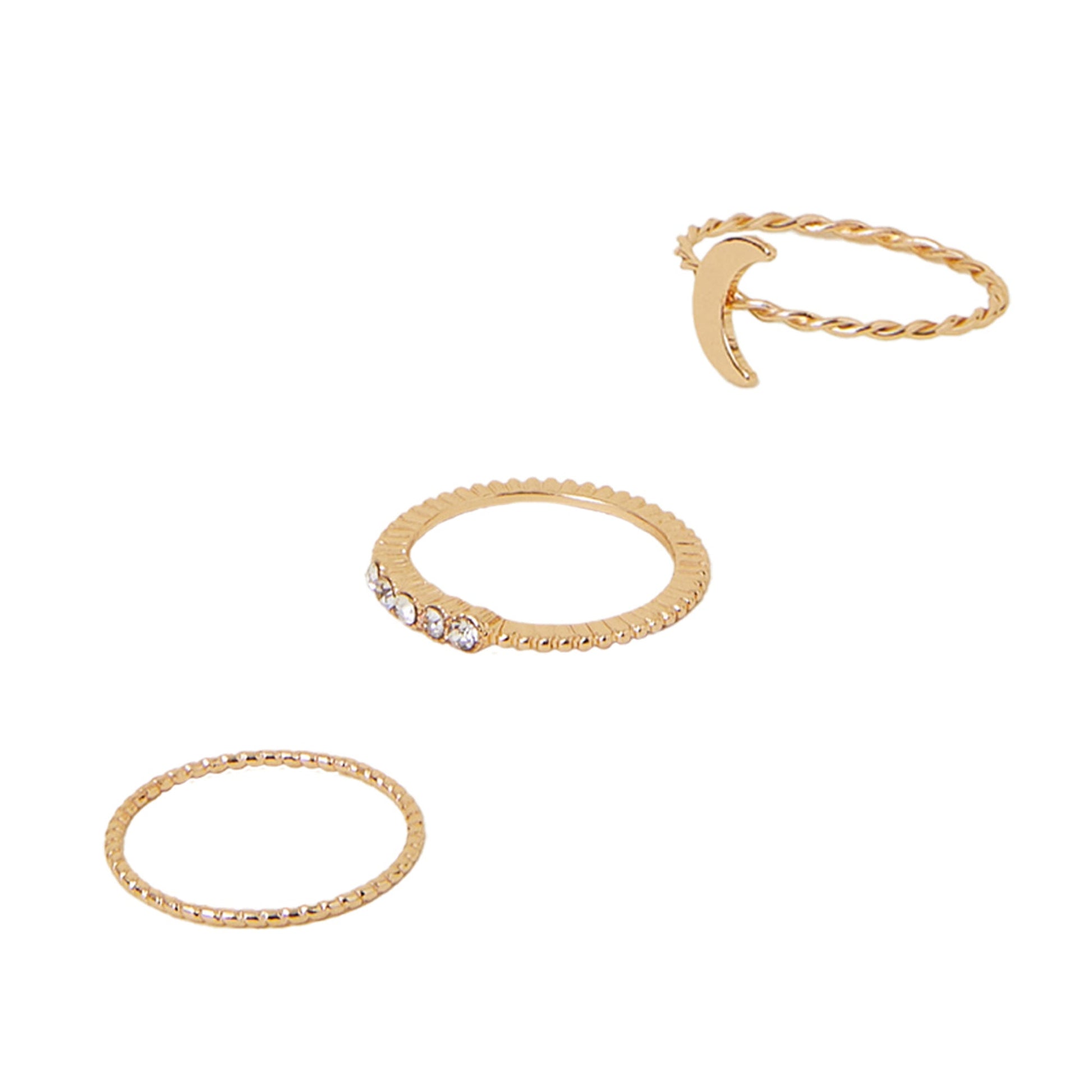 Gold Twist Moon Rings Pack Of 3-Medium