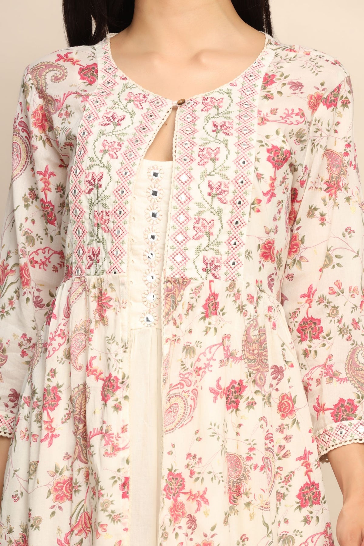 Sequins, thread work, mirror |