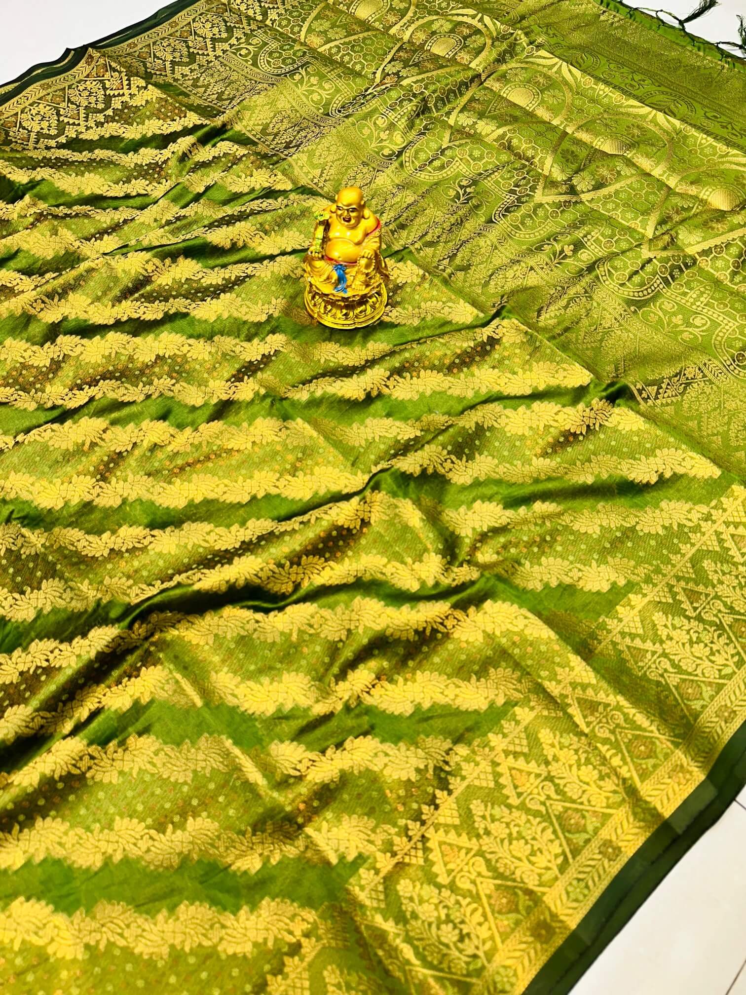 Gratifying Green Organza Silk Saree With Adorning Blouse Piece