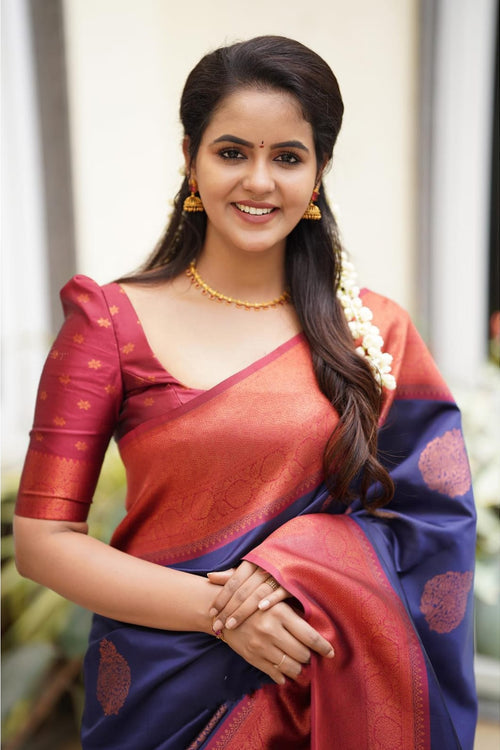 Lassitude Navy Blue Soft Silk Saree With Scintilla Blouse Piece