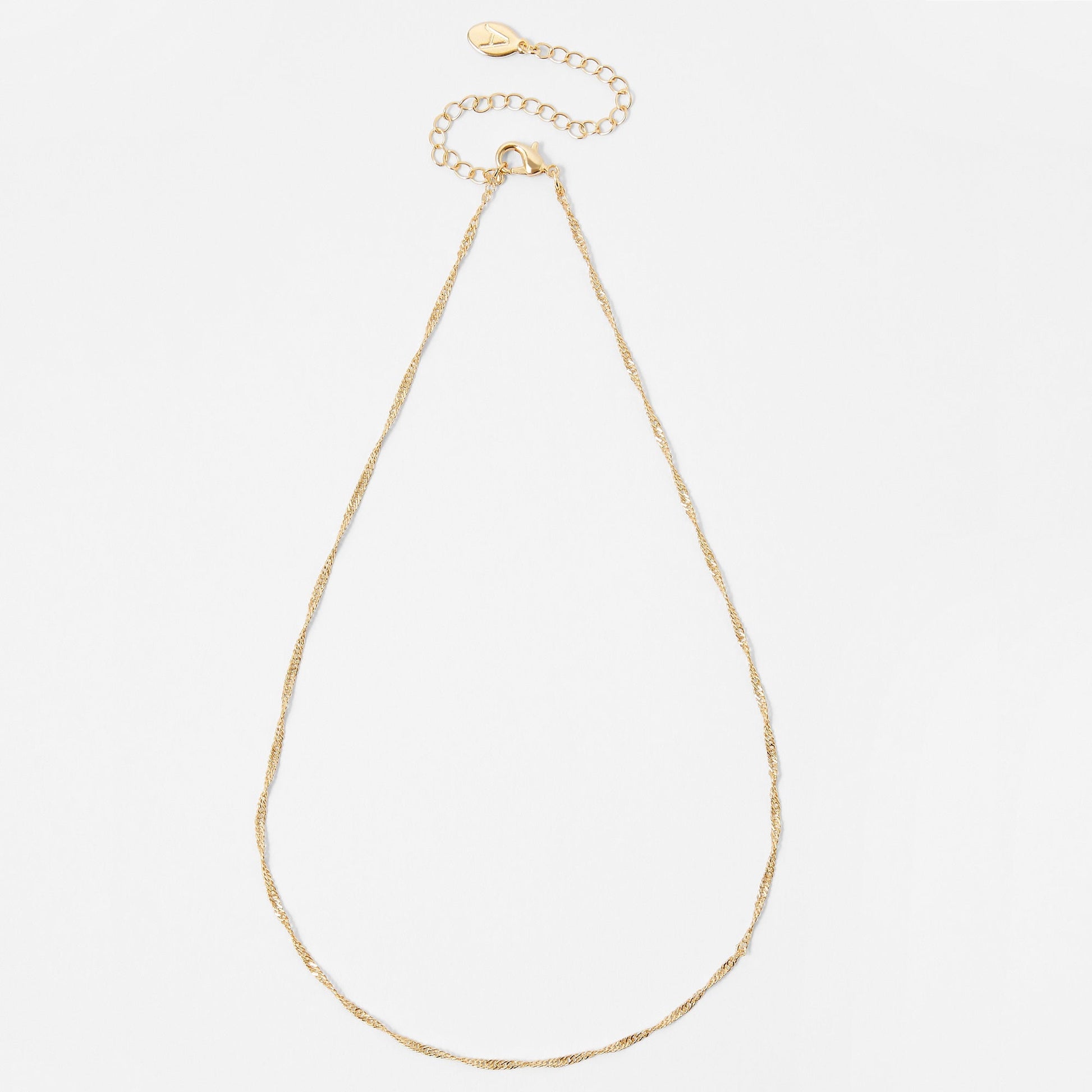 Sweet and shiny, this necklace features a simple twist design that's suitable for any occasion. Fastens with a lobster clasp and extender. Gold