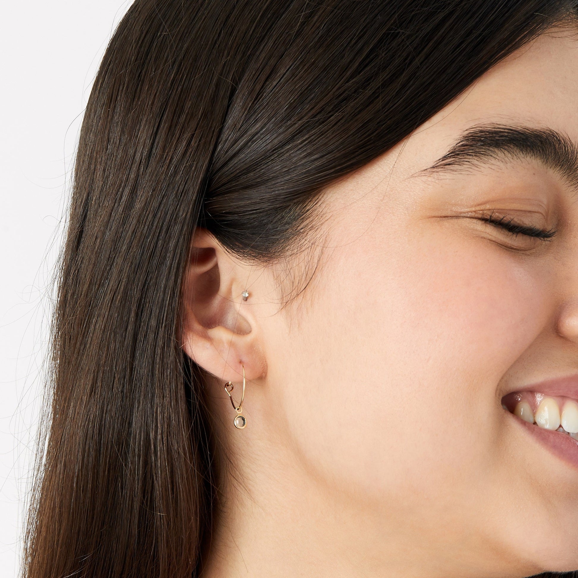 Look no further than our pack of three pairs of charmy hoop earrings for a lesson in cool-girl glamour. An understated style perfect for the everyday. This trio of huggie hoops features crystal charms on a fine, gold-tone hoop. Three pairs included.
