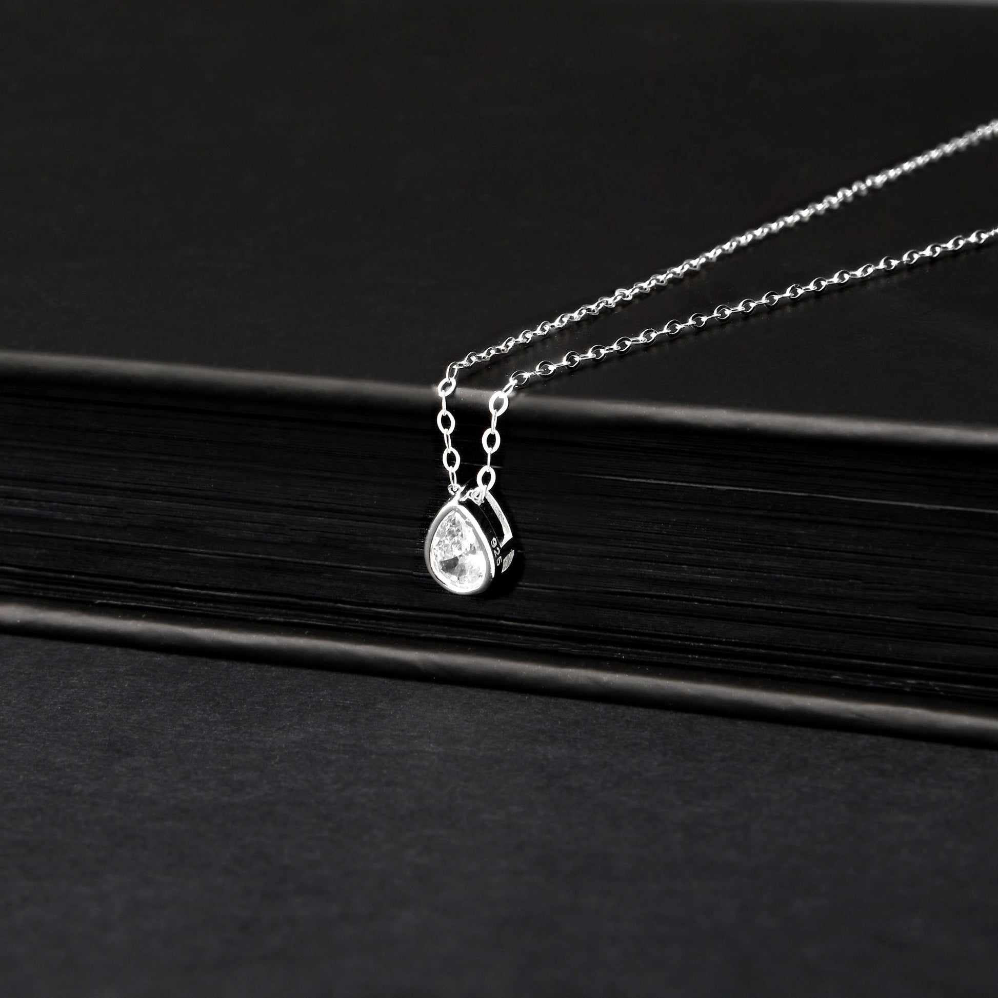 London Women's 925 Sterling Silver Hallmark Cubic Zirconia Sparkle Small Tear Necklace