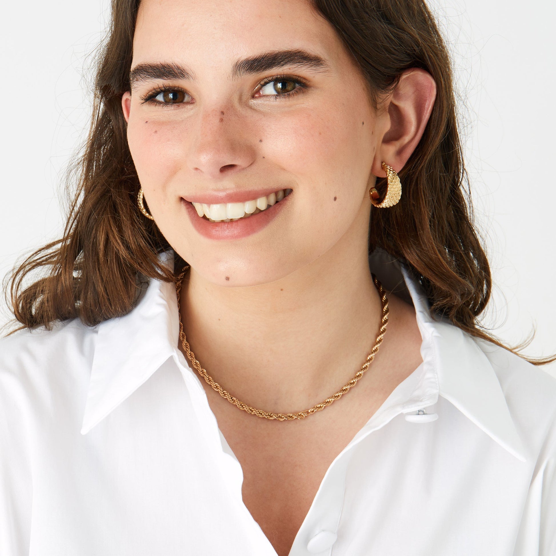 Pre-planning your weekend look? Elevate any look to the next level with this luxe-looking chunky chain! It features a twisted rope design with a lobster clasp fastening and extender.