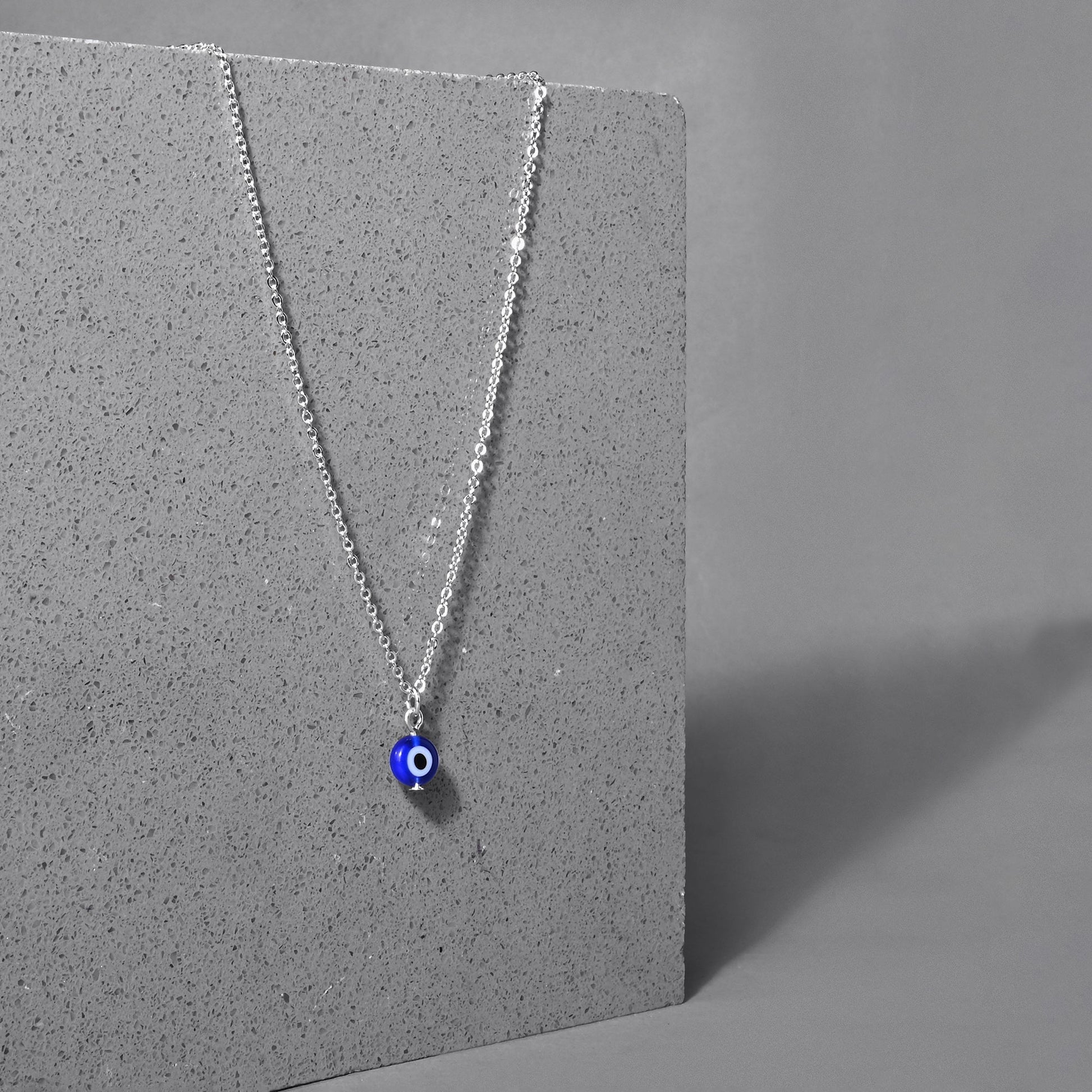 This simple and stylish evil-eye pendant necklace represents spiritual awareness whilst incorporating vibrant oceanic hues to your look. Crafted in silver-tone metal and fastens with a lobster clasp and extender