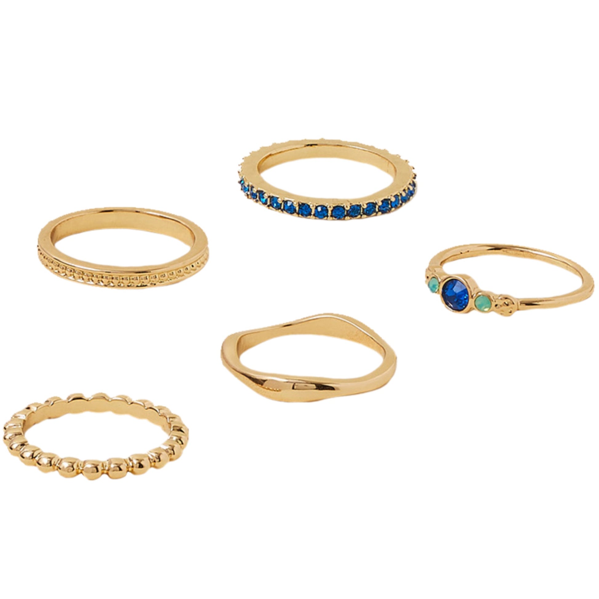 London Women's Blue Gem Band Rings Pack of 5-Large