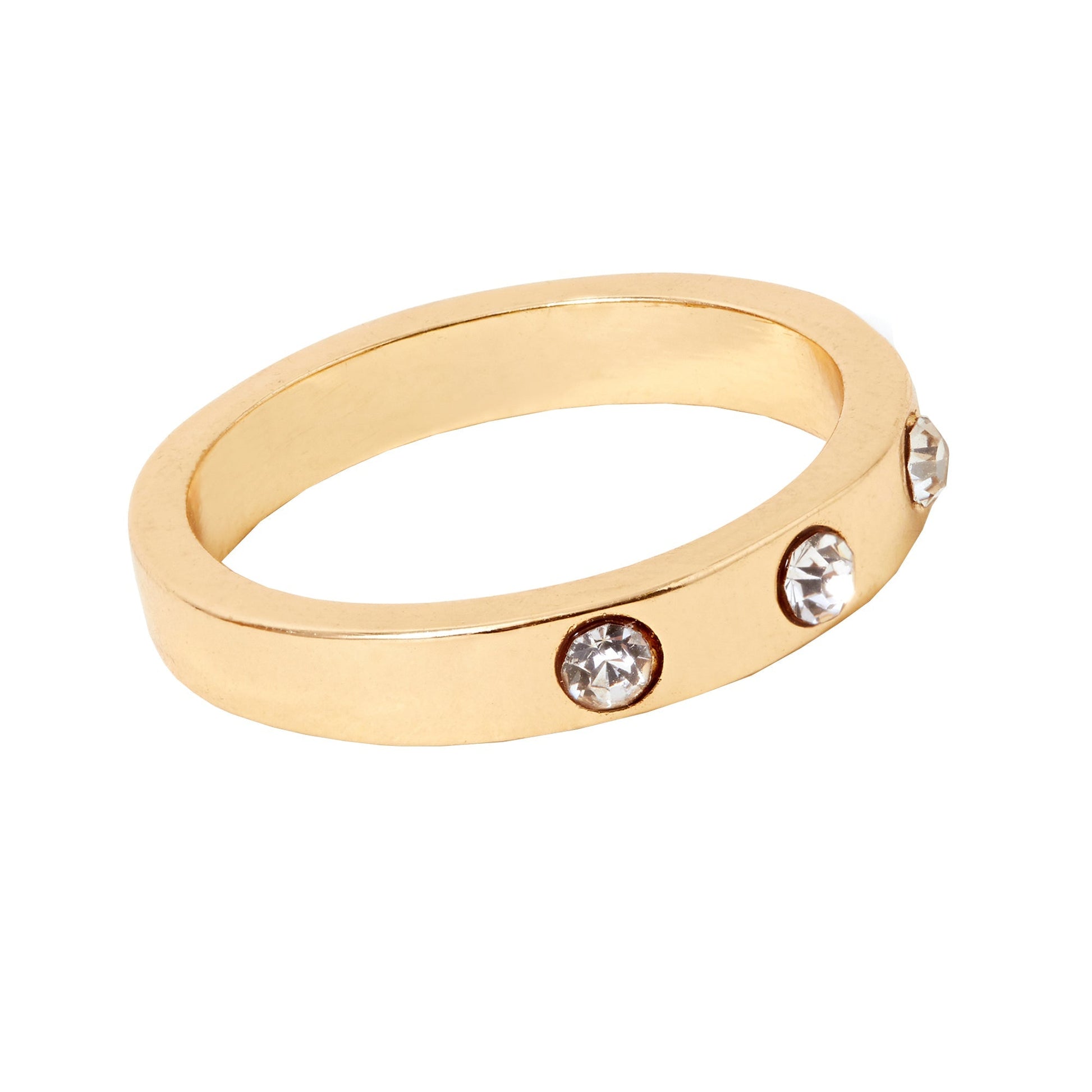 Chunky and funky, this ring is a welcome addition to any ring stack. It's designed with a gold-tone metal chunky band, with three gem insets for a touch of sparkle. Gold