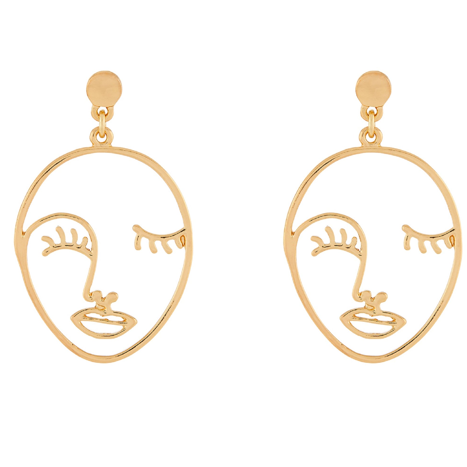 Embrace the latest trend with our face earrings. Created from gold-tone metal, this charming, playful pair of statement earrings to elevate any outfit. Non-refundable.