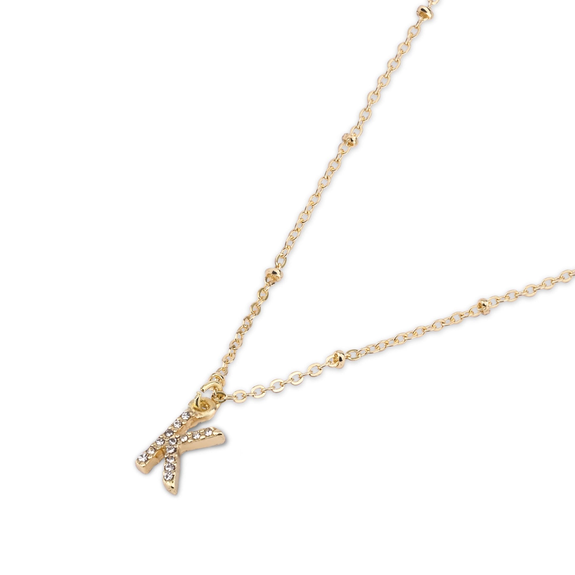 Understated, personal and great as a gift, this necklace features an initial pendant on a fine chain. Made from gold-tone metal and embellished with sparkles for a bit of extra sparkle. White