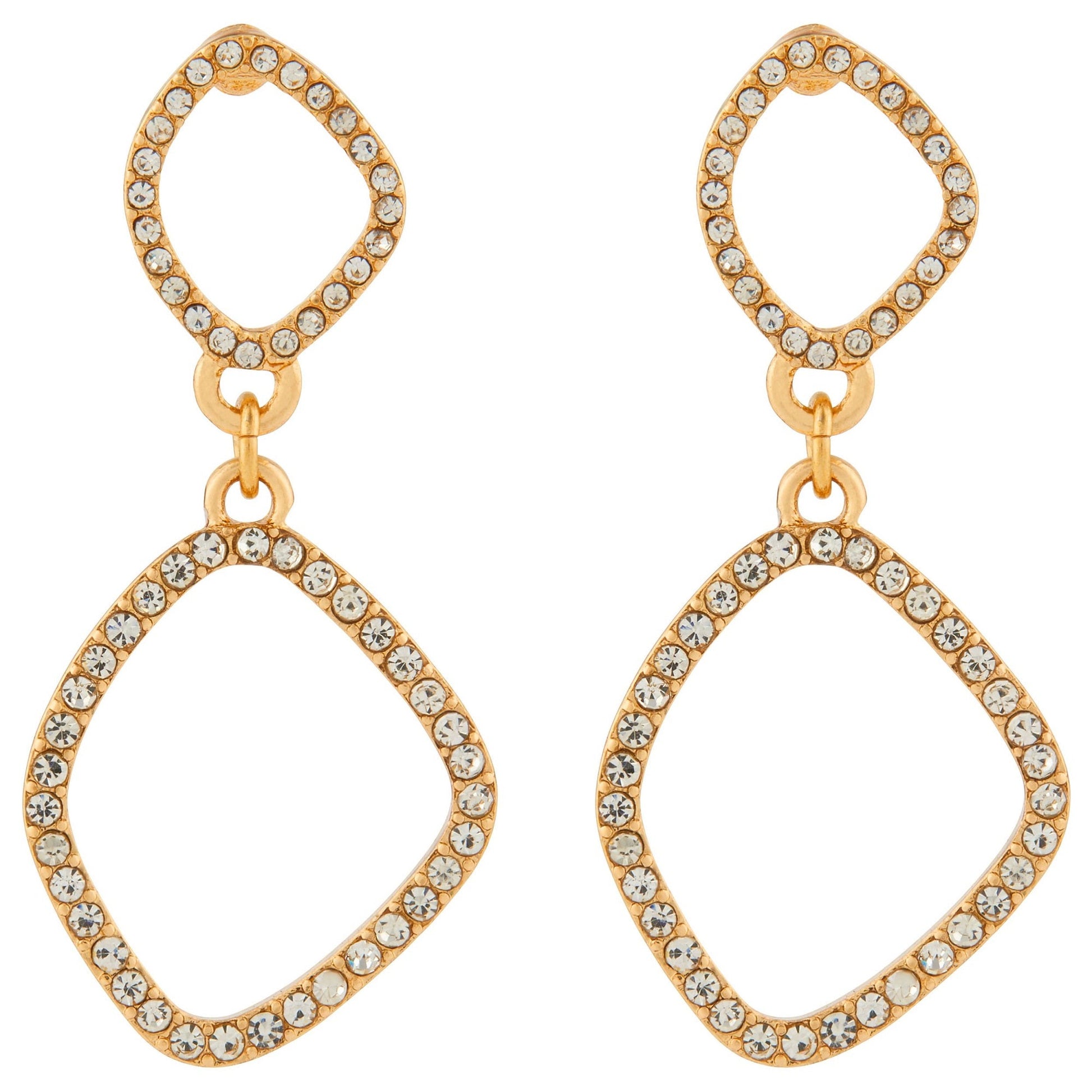 Finesse your look with these sparkling drop earrings. Made with two irregular-shaped hoops, set with miniature pavé gems joined by simple links and set in gold-tone metal. Finished with post backs. Non-refundable.