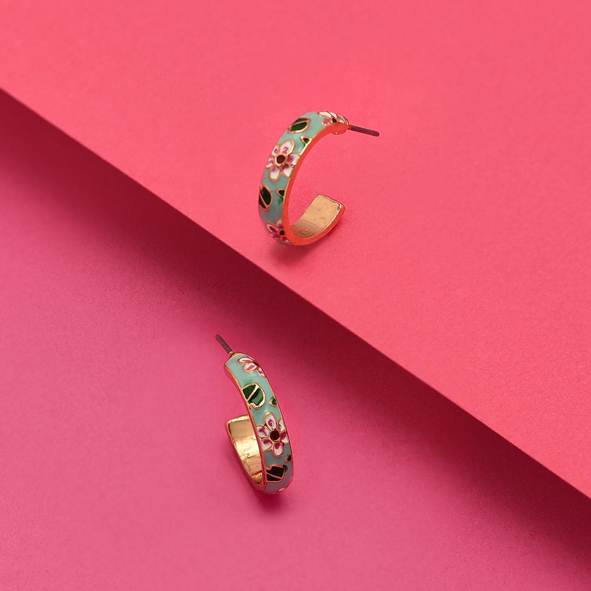 Blooming with colour, dress up your casual look with this pair. Consciously created in recycled gold-tone metal, these earrings adorn an enamel floral design. Perfect for the spring and summer seasons.These pieces are made from recycled zinc, which comes from post-consumer used recycled materials.