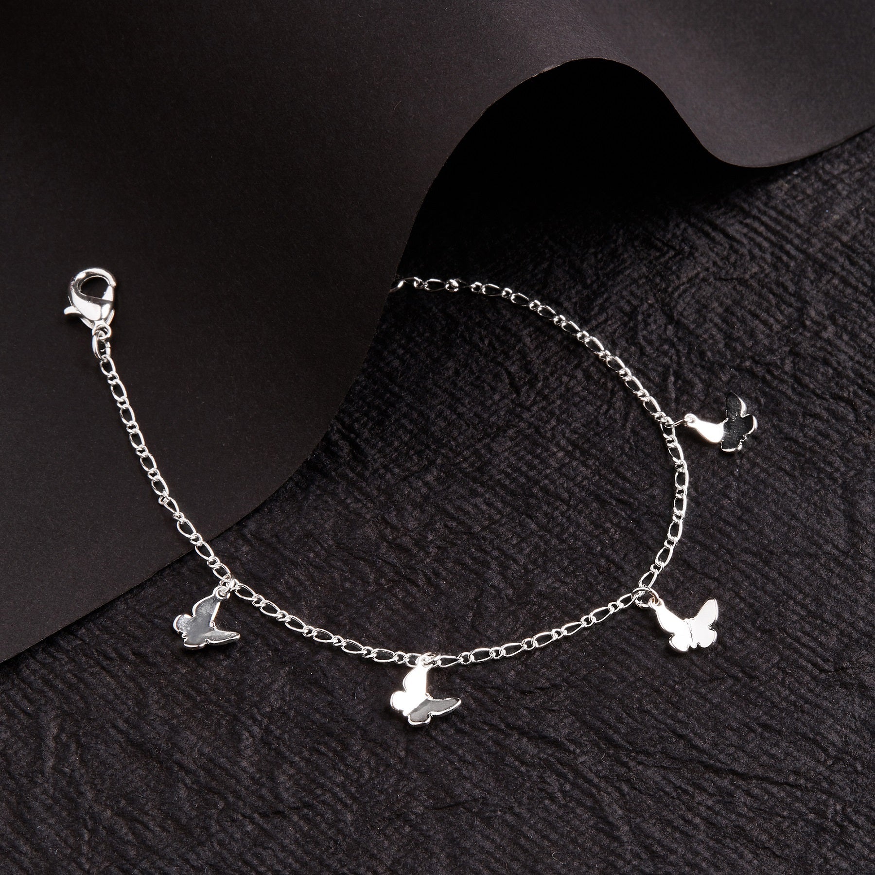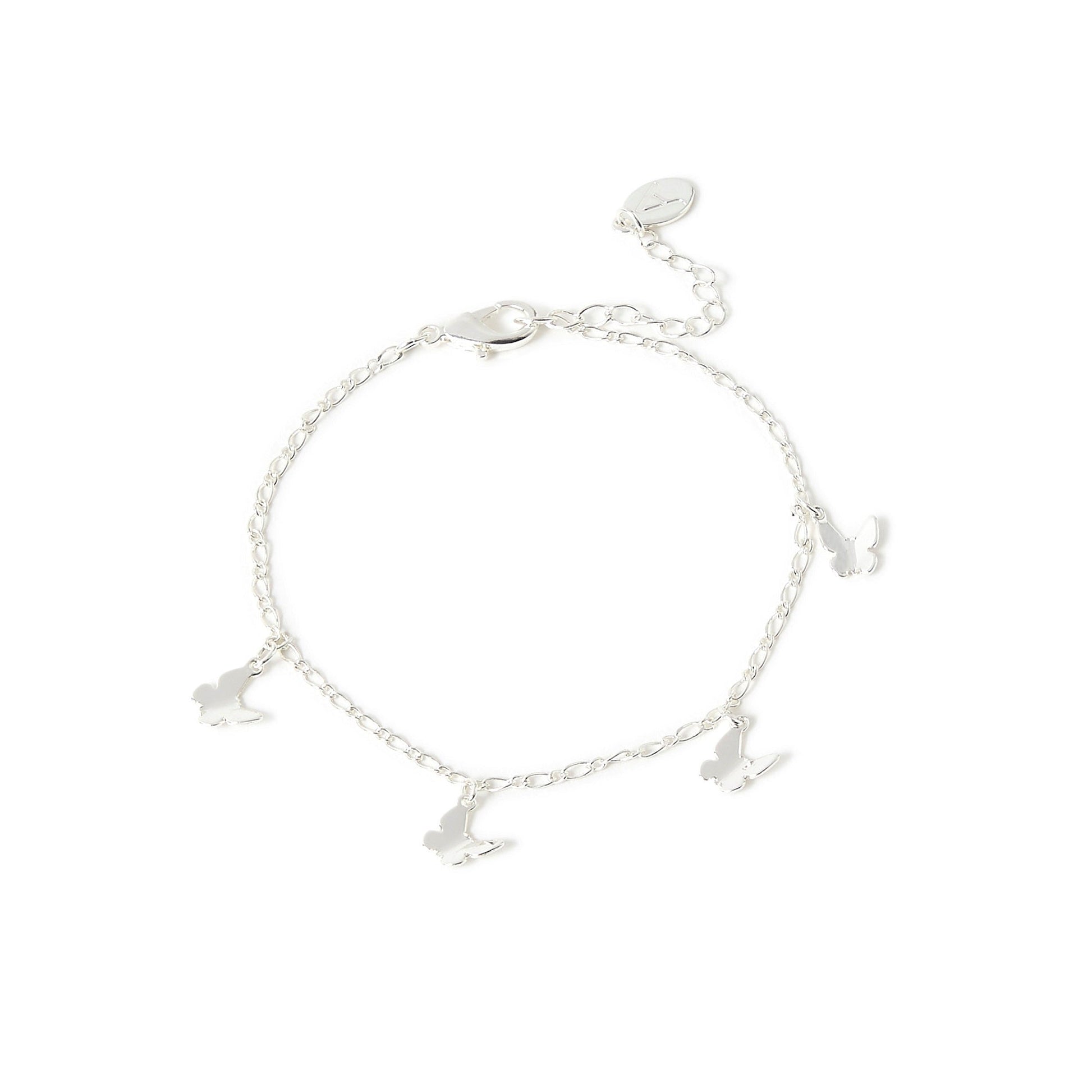 Designed In London.A delicate statement piece that, much like a butterfly, stands out on its own! Crafted in silver-tone metal, this chain bracelet is adorned with solid butterfly charms stationed throughout.