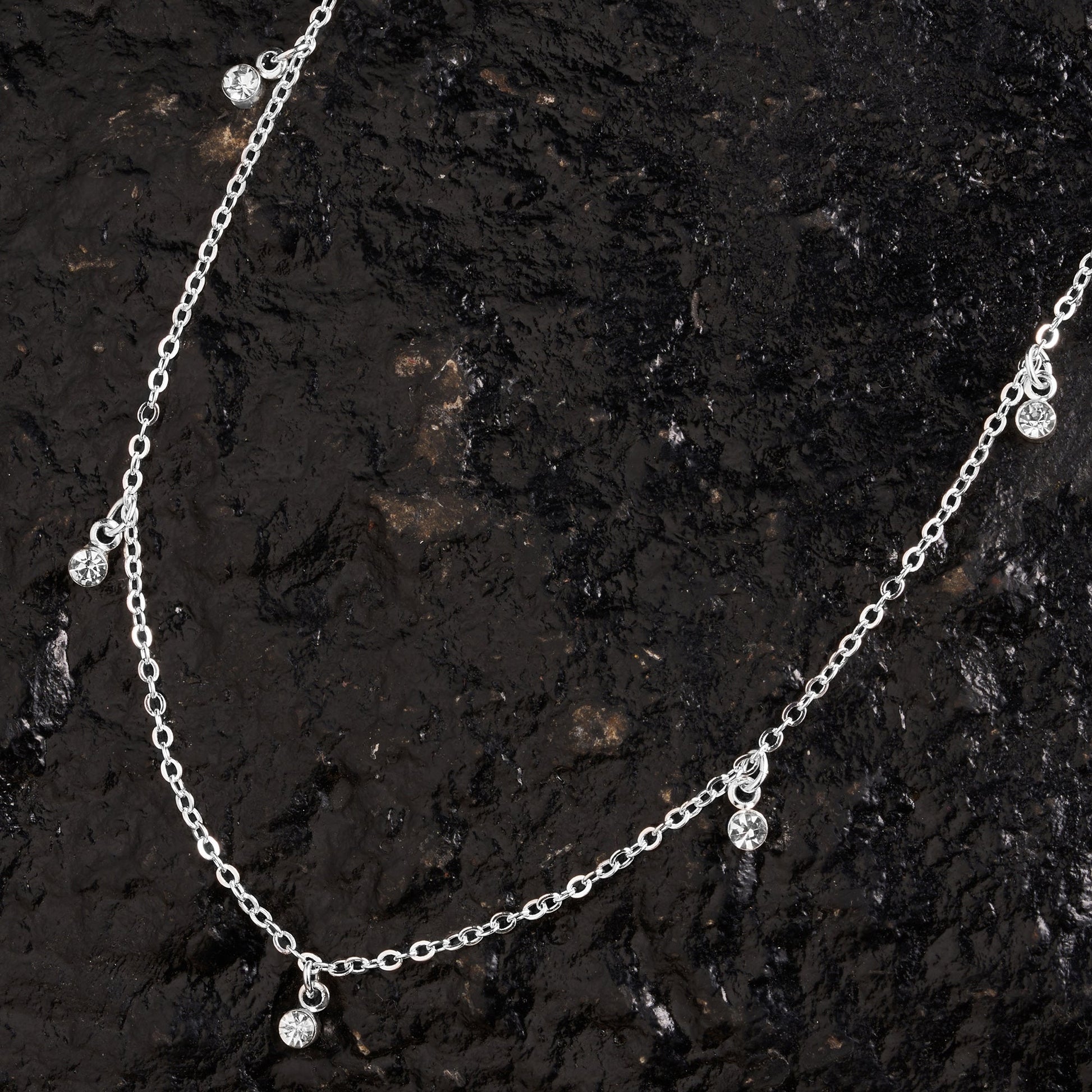 Understated. Stationed with twinkling gem charms, this necklace is designed with silver-tone metal and an adjustable lobster clasp.