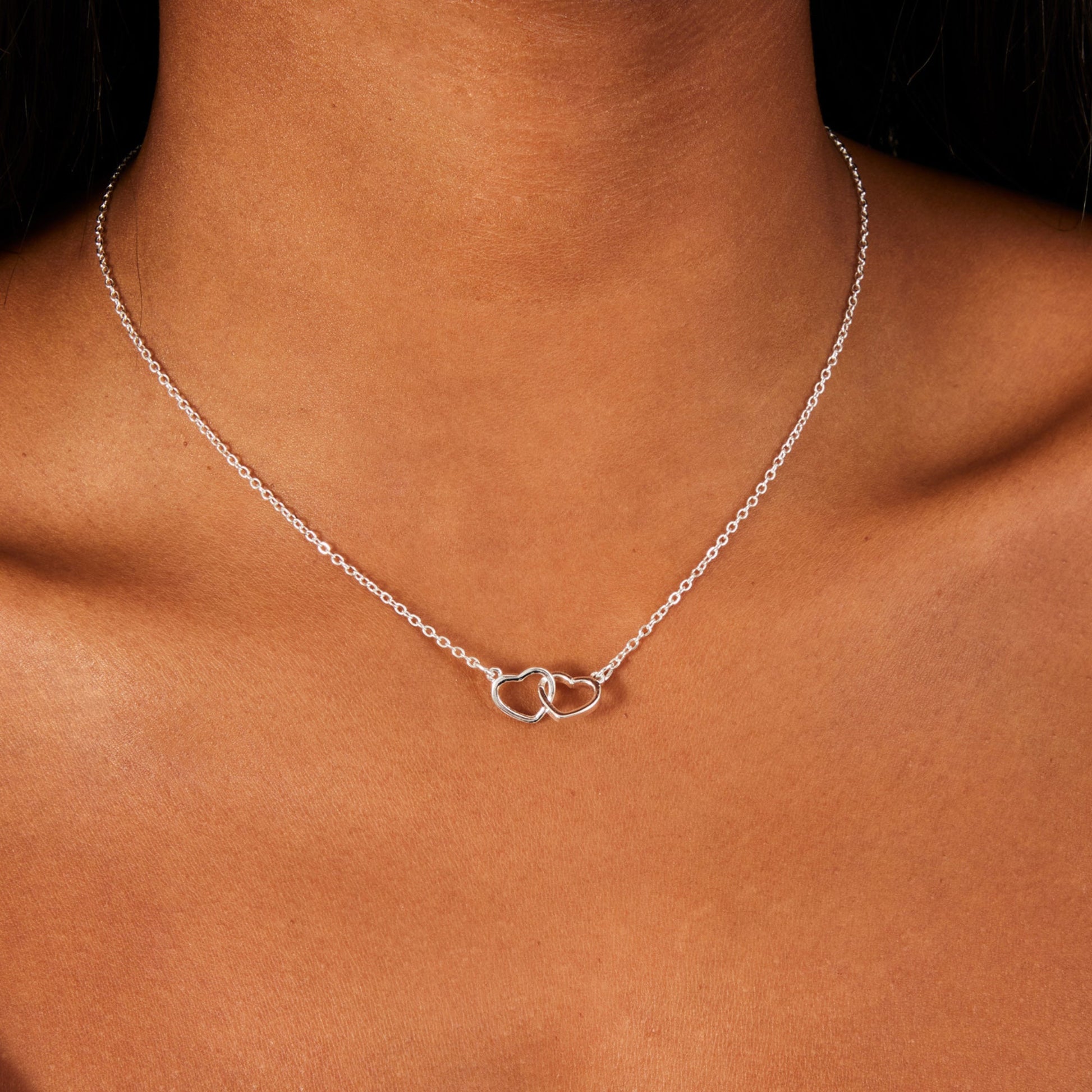 Double the love, double the fun: this shiny gold necklace features a linked heart pendant. Why not style it with a shorter necklace or choker to create a layered look?