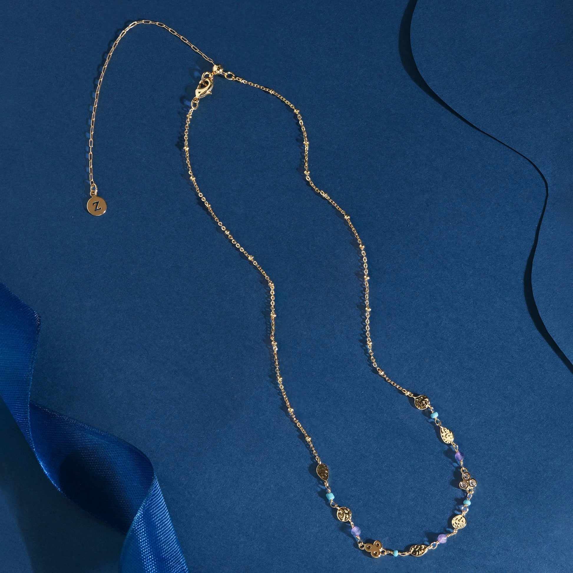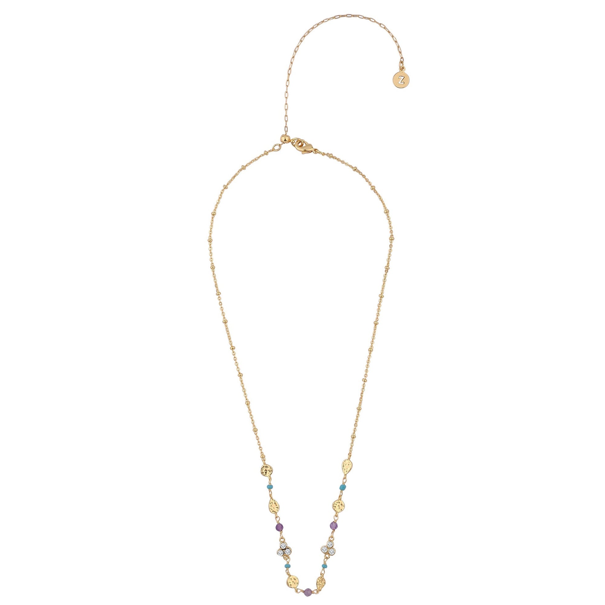 Part of the Z by Silk And Gleam collection. Detail, detail, detail ... crafted in gold-plated metal, this necklace is designed with a collection of colourful beading, clusters of diamantés, and hammered disc finish. Fastens with a lobster clasp and extender.