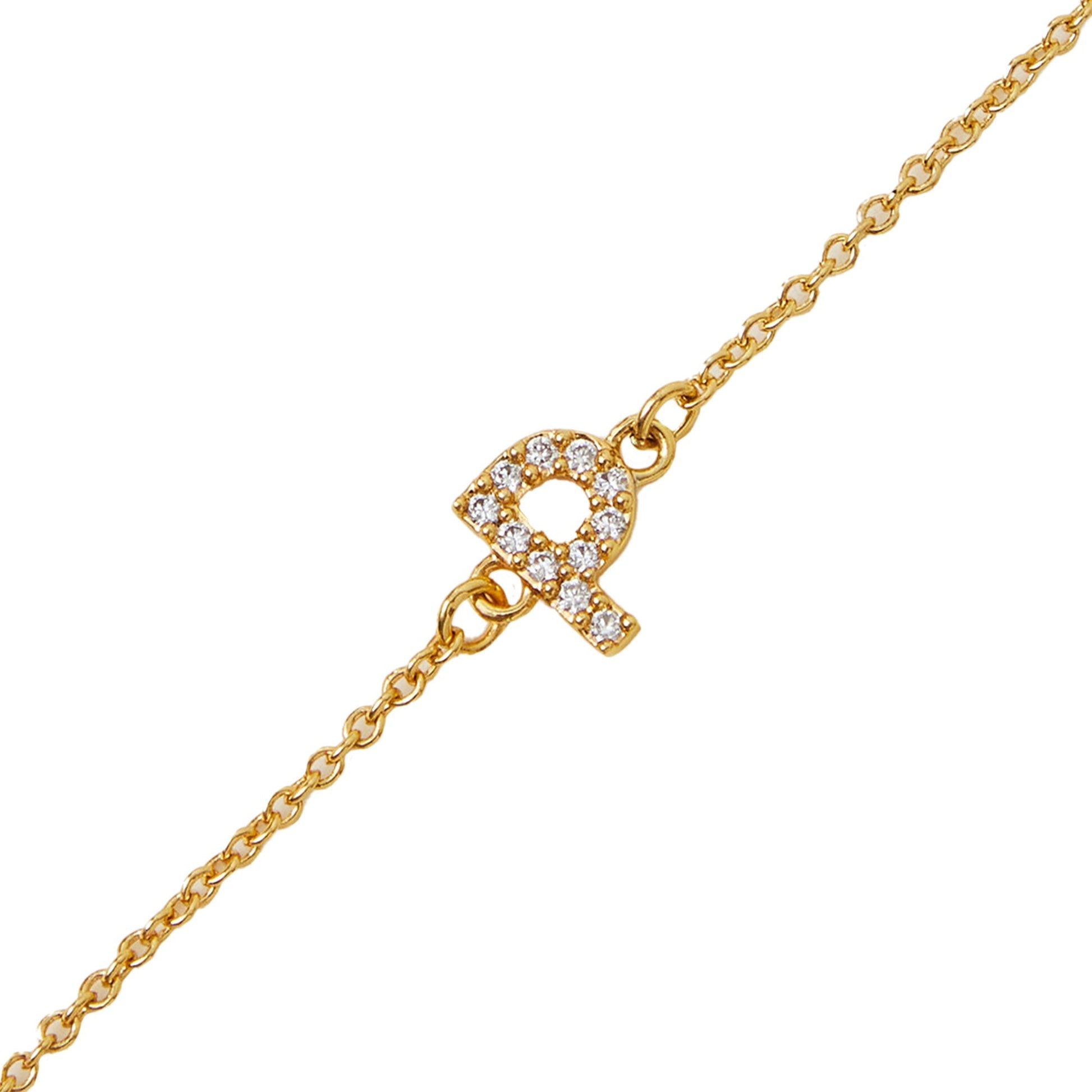 London Women's Z Real Gold Plated Cubic Zirconia Initial Bracelet Letter P