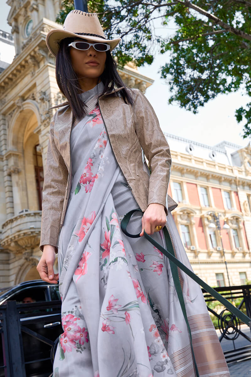 Petrichor Grey Organza Silk Saree With Sumptuous Blouse Piece