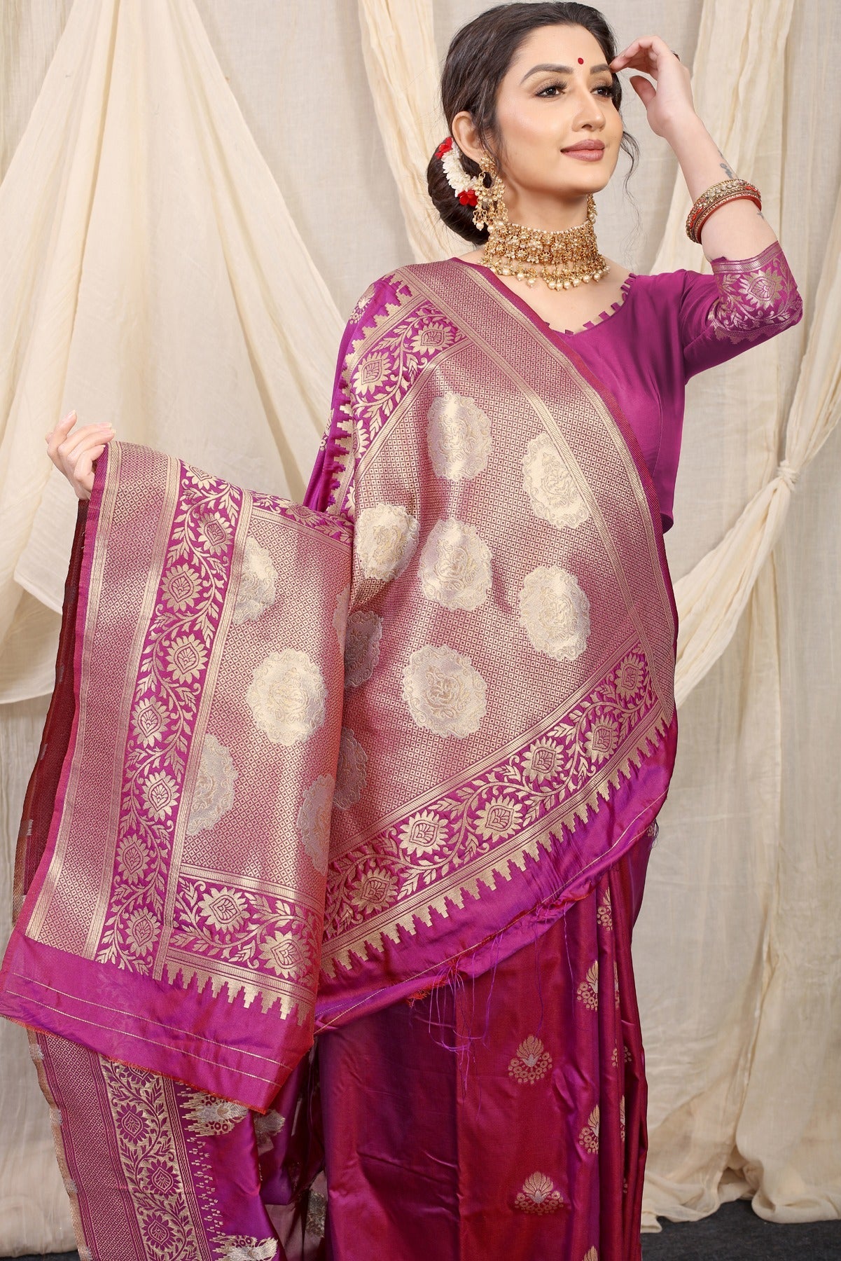 Pleasurable Purple Kanjivaram Silk With Effervescent Blouse Piece