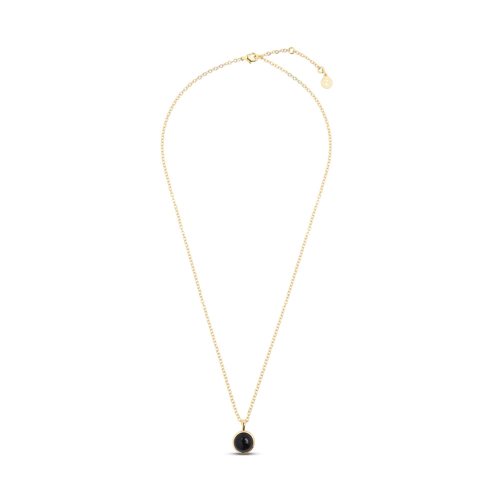 Part of the Z by Silk And Gleam collection. One for everyday. Keep this necklace around your neck through the midweek office chaos and Saturday evening tipples. It features a black onyx pendant believed to enhance a clear focus, stimulate logic and inspire grounding. Plated in 14 carat gold for a luxe, longer-lasting finish.