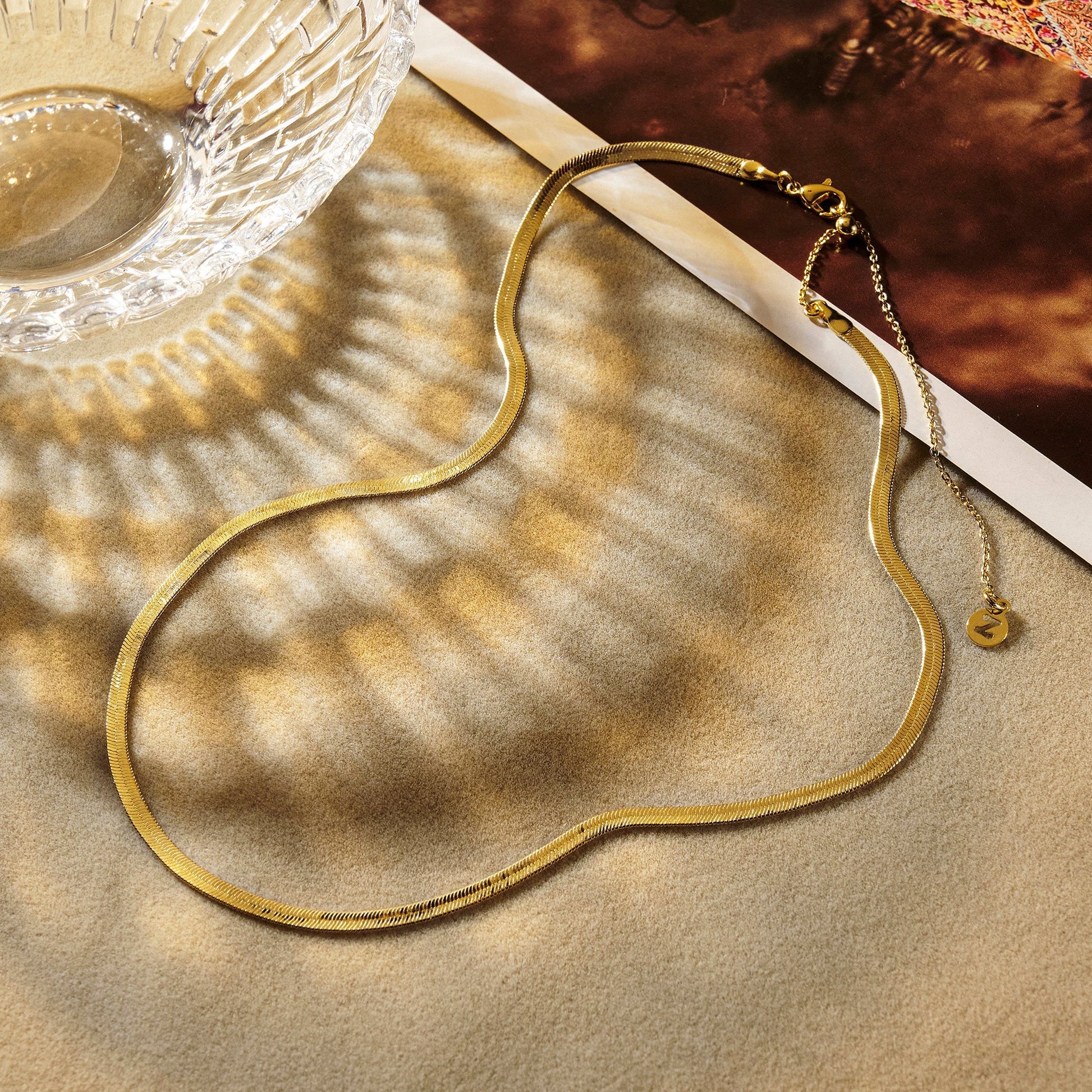 The Snake Chain Necklace is a stunning and effortlessly adds a touch of sophistication and style to your ensemble. With its unique snake-like interlocking links, this necklace chain creates a captivating and eye-catching effect that is sure to turn heads.