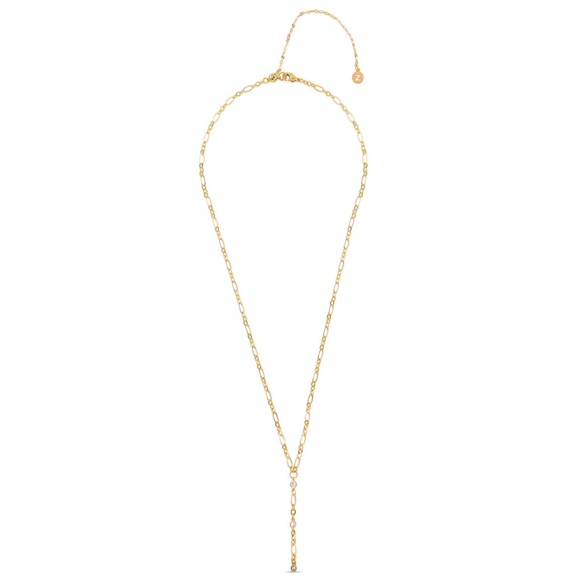 Part of the Z by Silk And Gleam collection. Chic yet relaxed, this necklace is effortlessly elevated. Designed in gold-plated metal, it features a chain base and diamante insets throughout for extra sparkle. Style with a plunge neckline to show it off. Plated in 14 carat gold for a luxe, longer-lasting finish.