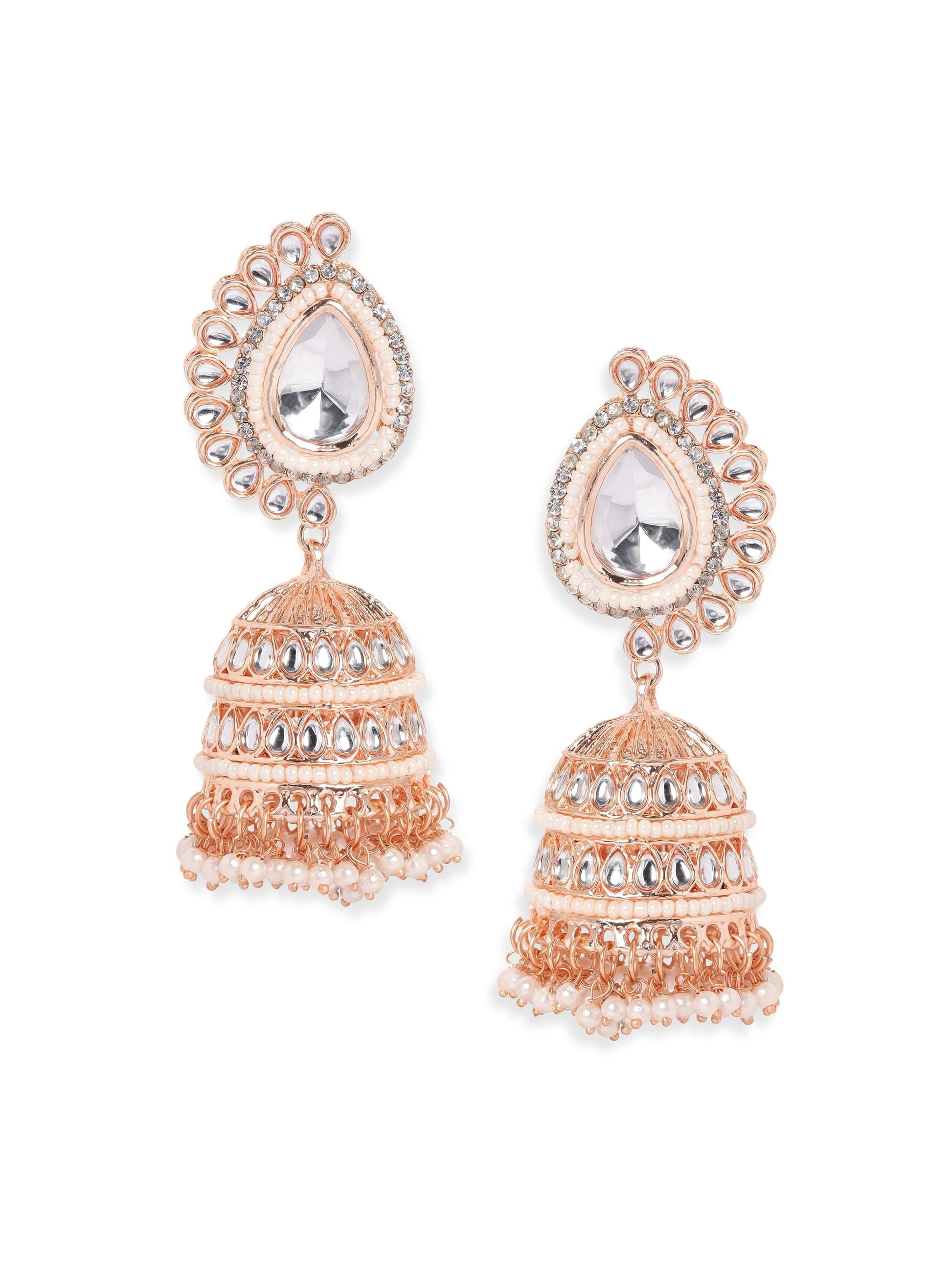 Rose gold plated kundan studded pearl beaded statment jhumka Earrings