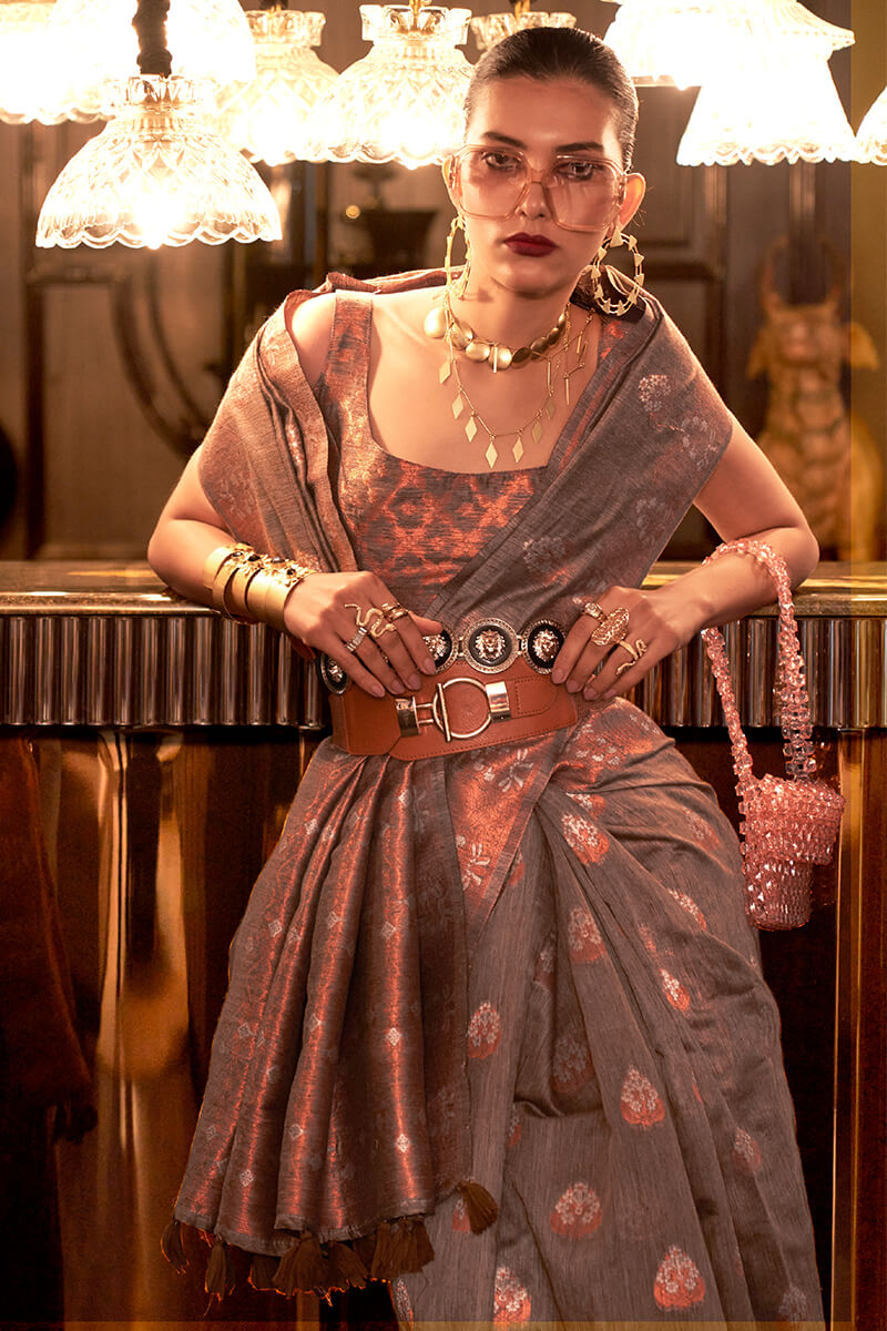 Sophisticated Brown Cotton Silk Saree With Mesmerising Blouse Piece